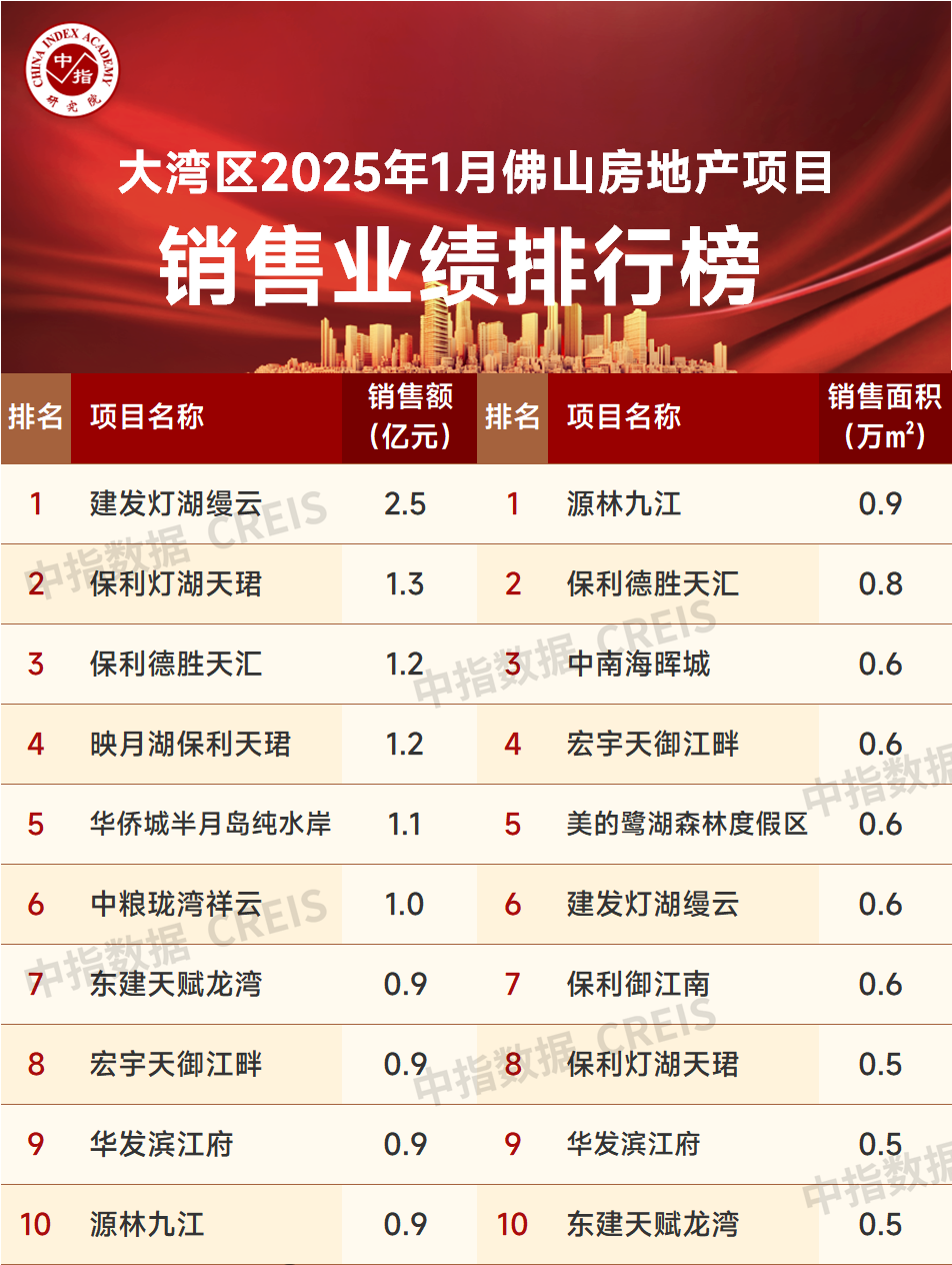 大湾区2025年1月佛山房地产企业发卖业绩排行榜